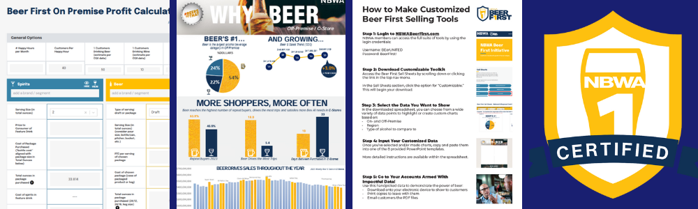 Beer First tools equip distributors with data on value of the total beer category to use with your accounts. The suite of tools includes customizable sell sheets, on- and off-premise profit calculators and activation kits, all designed to help you clearly communicate to your accounts: put beer first and you will win!